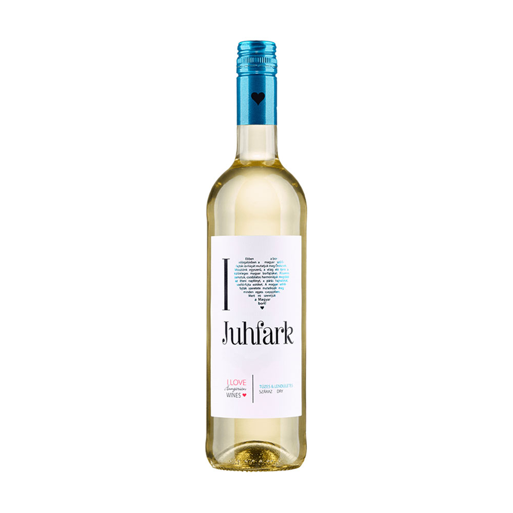 I Love Juhfark száraz fehérbor – Dunántúli oltalom alatt álló földrajzi jelzésű fehérbor, amely fűszeres zamataival és csodálatos harmóniájával a napfényes dűlők hangulatát idézi; friss, tavaszi virágos illatát üde zöldalmás ízvilág kíséri, elegáns és vonzó karakterrel; magyaros ételekhez és fehérhúsú szárnyasok mellé kiváló választás.