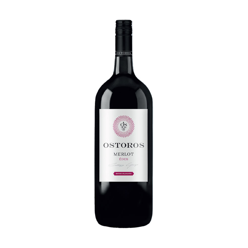 Ostoros Birtok Egri Merlot édes vörösbor – Válogatott Merlot szőlőből készült, bársonyos és gazdag vörösbor, amelynek illatában konyakmeggyes és szilvás jegyek bontakoznak ki; az érett gyümölcsösséget a feszes egri savak tartják harmonikus egyensúlyban, így kiváló kísérője könnyedebb húsételeknek és hangulatos beszélgetéseknek.