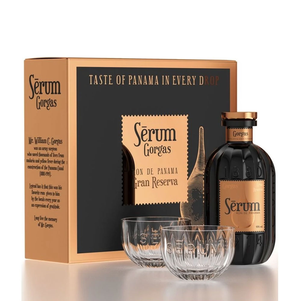 Sérum Gorgas Gran Reserva egy prémium panamai rum, amely elegáns díszdobozban, két pohárral együtt érkezik, így tökéletes ajándék választás. A rum több éven át érlelt, gondosan válogatott tételekből készül, amelyeket ex-bourbon hordókban pihentettek, ez adja mélységét és kifinomult komplexitását.