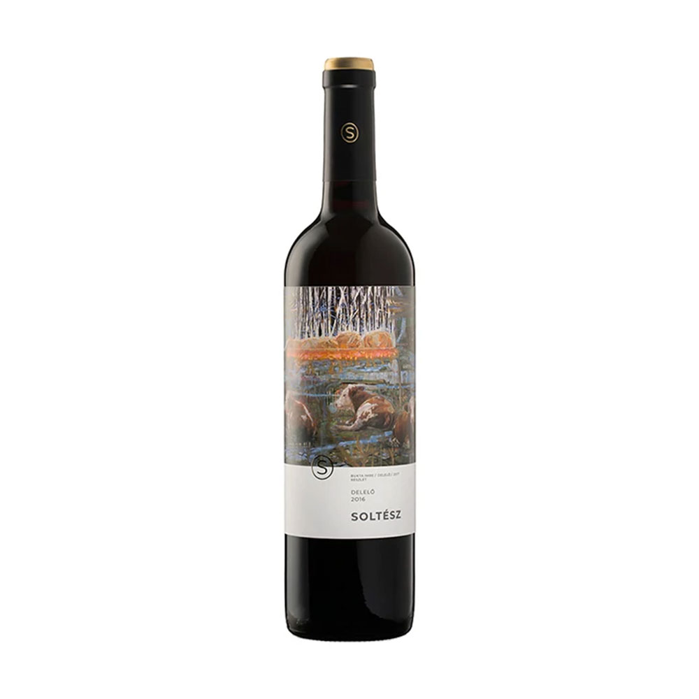 Soltész Delelő Cuvée száraz vörösbor – A Cabernet Sauvignon 14 hónapig új magyar tölgyfahordóban érlelődött, míg a Merlot és a Zweigelt acéltartályban őrizte meg gyümölcsös karakterét, így született meg ez a feszes alapokra épülő, mégis bársonyos és harmonikus cuvée, határozott tanninokkal, erdei bogyós gyümölcsökkel, elegáns vaníliássággal és hosszan élvezhető lecsengéssel; többszörösen aranyérmes díjnyertes tétel.
