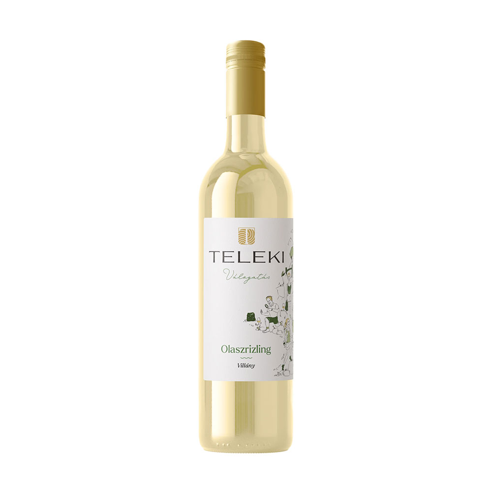 Teleki Gasztro Villányi Olaszrizling száraz fehérbor – Friss, nyári hangulatú fehérbor halvány zöldessárga színnel, citrusos és fehér húsú gyümölcsöket idéző illattal; ízében lédús savak, könnyed fűszeresség és egy játékos, enyhén cukorkás érzet jelenik meg – tökéletes választás tópartra, teraszra és gondtalan napokra.