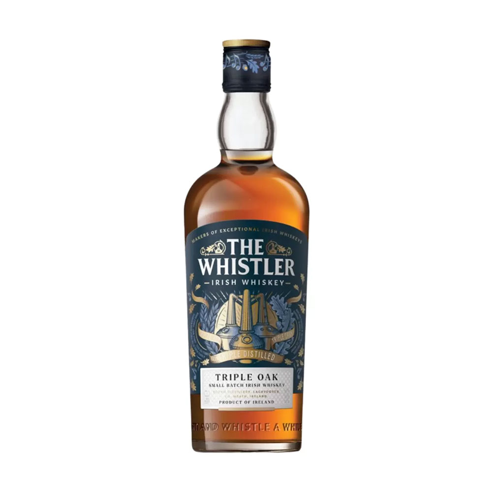 Whistler Triple Oak whiskey – Izgalmas ír whiskey Single Pot Still, Single Malt és Single Grain tételek házasításából, amely bourbon-, Oloroso és Pedro Ximénez sherryhordós érleléssel nyeri el gazdag, komplex karakterét; illatában sós karamell, vanília, tölgyfűszerek és citrusok, ízében méz, krémes vanília és lágy fűszeresség jelenik meg friss citrusos jegyekkel; hosszú, enyhén bizsergető lecsengését mézes édesség zárja, így önmagában, kevés vízzel vagy koktélalapként is kiváló választás.